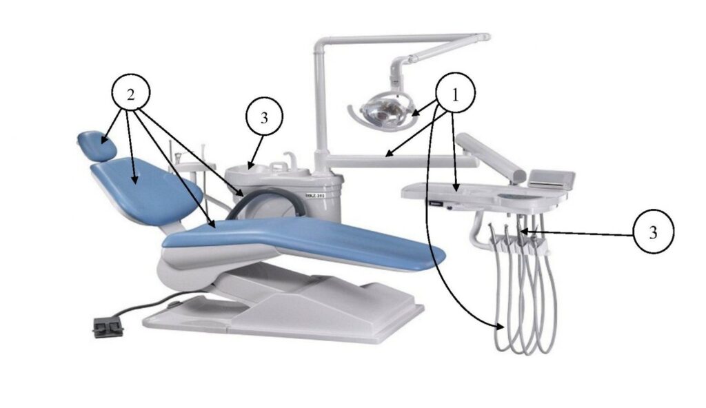 – Khăn 1: Đèn nha khoa, bàn dụng cụ, bàn điều khiển, tay vịn hơi, dây tay khoan.
